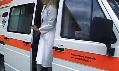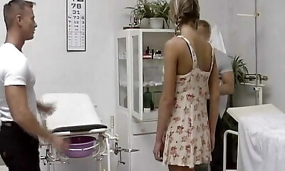 A beautiful blonde German teenage gets fucked by 2 horny doctors