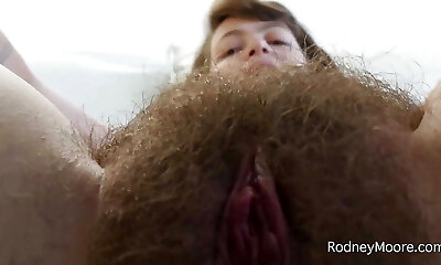 Orgasm craving wench is teasing her fur covered cooch in the bedroom