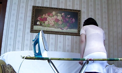 Mischievous maid in killer lingerie set with pantyhose and garters fucks like nobody