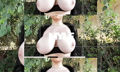 Old German chick with huge all-natural milk cans playing with her sex toy