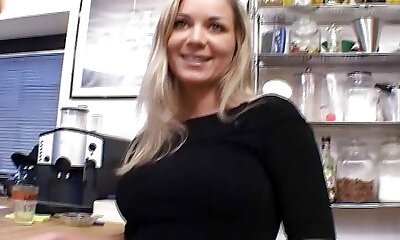 Super busty blonde from Germany enjoy masturbating in the kitchen